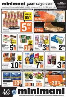 Käytä Tiendeota tarkistaaksesi paikallisten kauppojen aukioloajat, puhelinnumerot ja sijainnit ja mitä tarjouksia voit käyttää kussakin niistä.Tilaa uutiskirjeemme saadaksesi kaikki tarjouksemme ja uutisemme suoraan sähköpostiisi. Kirjoita vain sähköpostiosoitteesi ja ala hyödyntää alennuksia.Jos haluat säästää tehdessäsi ostoksia seuraavissa kaupoissa, Tiendeo on paras paikka tarkistaa kaikki kampanjat ennen ostamista: Prisma, Lidl, S-Market, Tokmanni, K-Supermarket, Rusta, HalpaHalli, K-Citymarket, K-Market, Aldo jne.!Kuinka löytää oikeat tarjoukset?